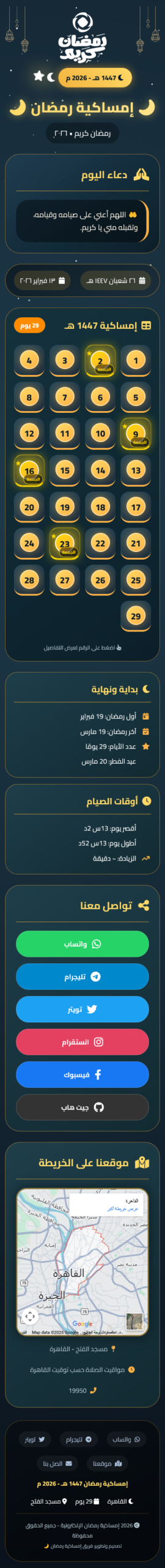 🌙 إمساكية رمضان الإلكترونية • 1447 هـ – 2026 م